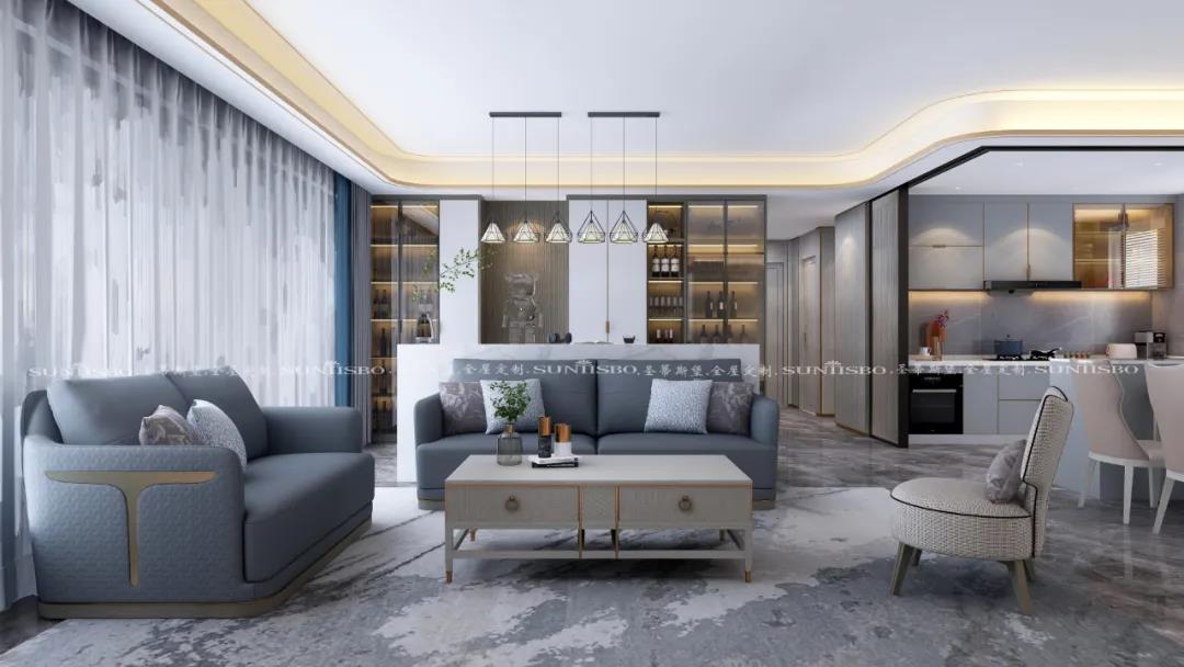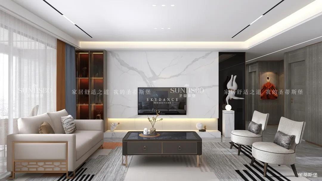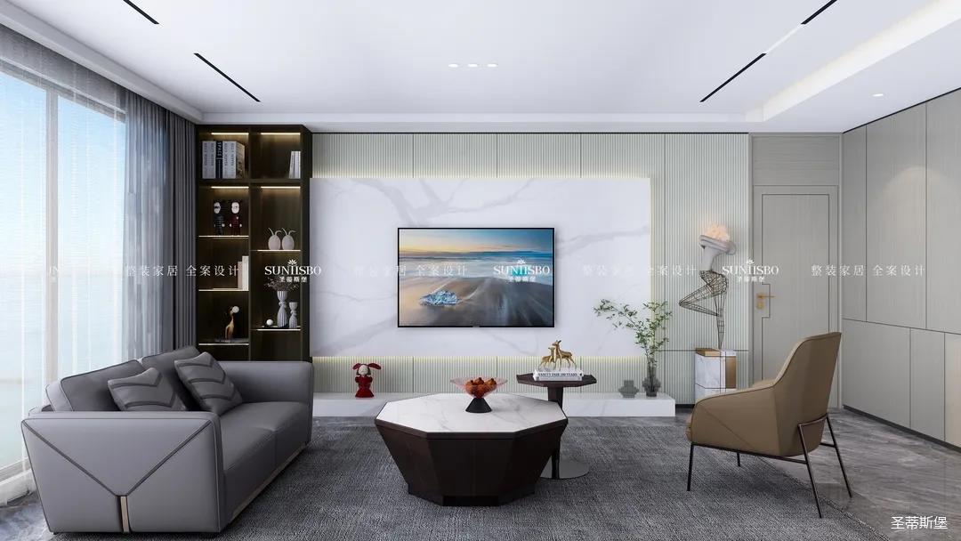 現(xiàn)代戶型更是迎合了這種簡(jiǎn)約趨勢(shì),將客餐廳設(shè)計(jì)在同一水平線上,還可以考慮在墻體做壁龕設(shè)計(jì),把電視嵌入墻體內(nèi)部,讓客廳空間一體式立面效果更整潔,空間的整體感更強(qiáng),動(dòng)線也更加流暢。