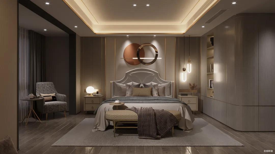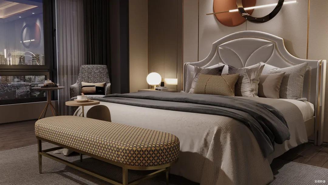 臥室空間整體以護(hù)墻板定制為主,整體設(shè)計(jì)注重空間簡(jiǎn)約、自然,沒有繁雜的裝飾。結(jié)合業(yè)主對(duì)理想家的想象,采用暖色調(diào)來襯托溫馨實(shí)感,延伸業(yè)主對(duì)家的定義,用最質(zhì)樸的木紋融合極簡(jiǎn)線條平鋪的形式,體悟自然的溫度,為都市生活帶去不一樣的體驗(yàn)感。