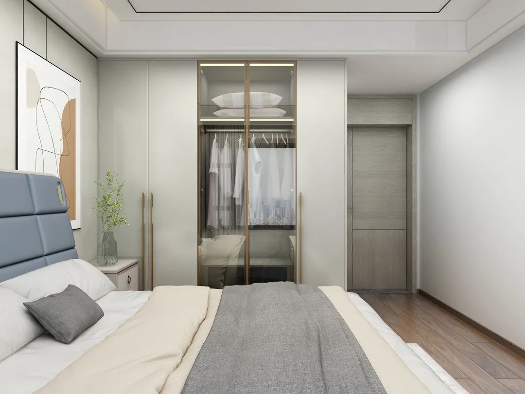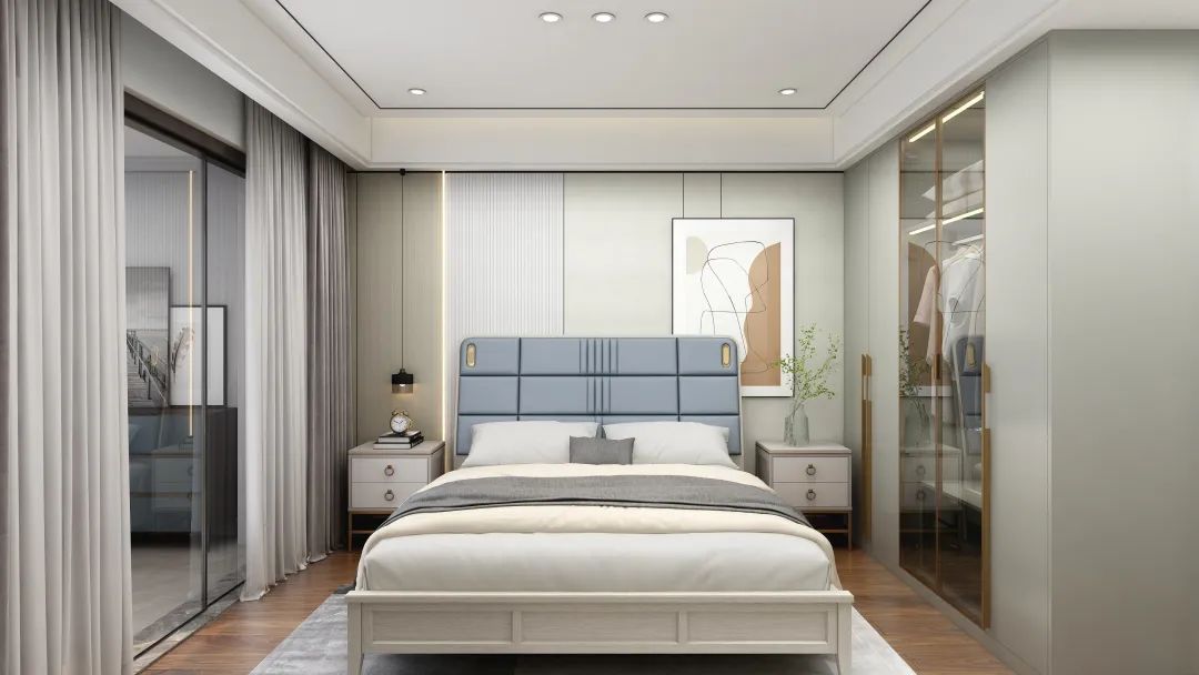 次臥用淺灰奠定空間時尚且沉穩(wěn)的格調
